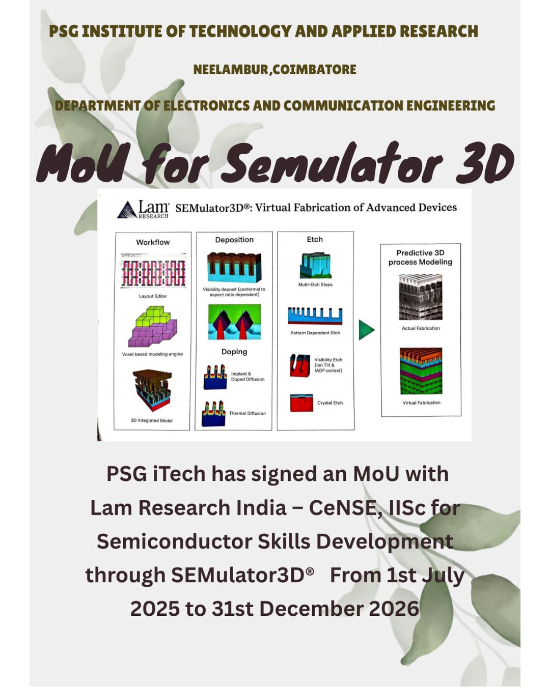 The Department of Electronics and Communication Engineering (ECE) was established in 2014 with the launch of its first undergraduate programme, B.E. Electronics and Communication Engineering. In 2023, the department expanded its intake capacity to 120 students, and in 2025 introduced a second programme, B.Tech. Electronics Engineering ( VLSI Design and Technology), to meet the growing opportunity and demand for skilled professionals in the semiconductor and chip design industry.